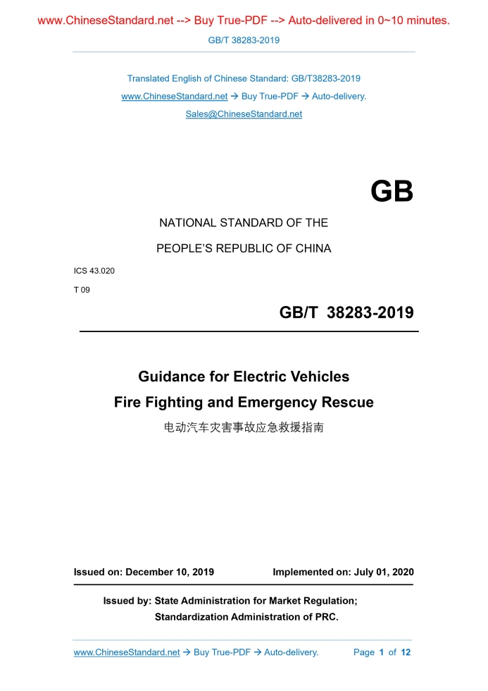 GB/T 38283-2019: Guidance for Electric Vehicles Fire Fighting and Emergency Rescue Delivery: 9 seconds. True-PDF full-copy in English & invoice will be downloaded + auto-delivered via email. See step-by-step procedure Status: Valid