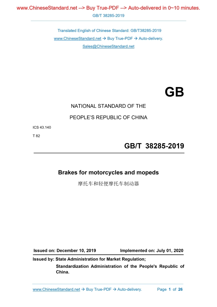 GB/T 38285-2019: Brakes for motorcycles and mopeds Delivery: 9 seconds. True-PDF full-copy in English & invoice will be downloaded + auto-delivered via email. See step-by-step procedure Status: Valid