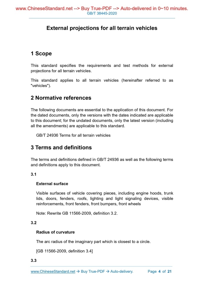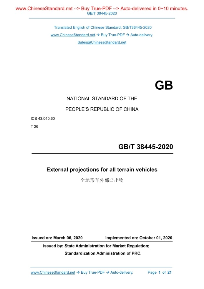 GB/T 38445-2020: External projections for all terrain vehicles Delivery: 9 seconds. True-PDF full-copy in English & invoice will be downloaded + auto-delivered via email. See step-by-step procedure Status: Valid