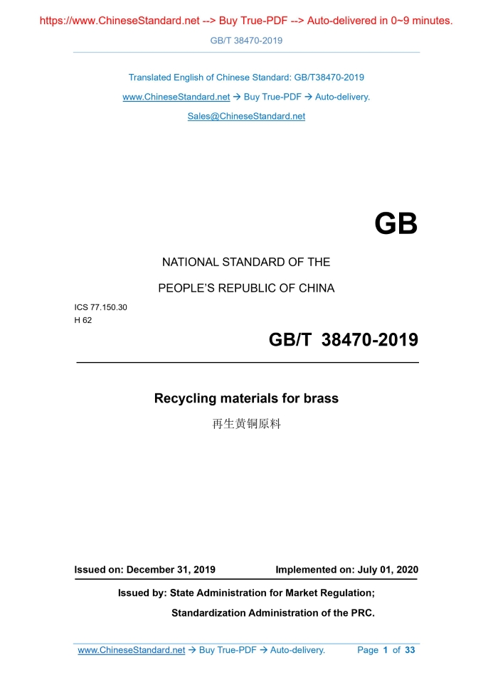 GB/T 38470-2019: Recycling materials for brass Delivery: 9 seconds. True-PDF full-copy in English & invoice will be downloaded + auto-delivered via email. See step-by-step procedure Status: Obsolete GB/T 38470: Historical versions
