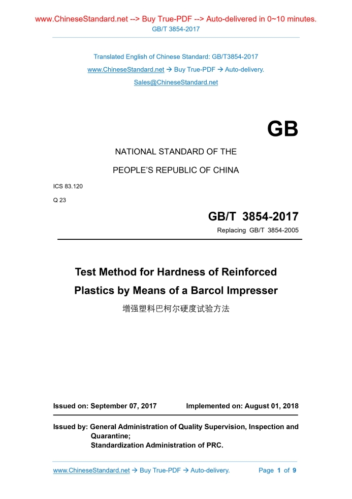 GB/T 3854-2017: Test method for hardness of reinforced plastics by means of a Barcol impresser Delivery: 9 seconds. True-PDF full-copy in English & invoice will be downloaded + auto-delivered via email. See step-by-step procedure Status: Valid GB/T 3854: Historical versions