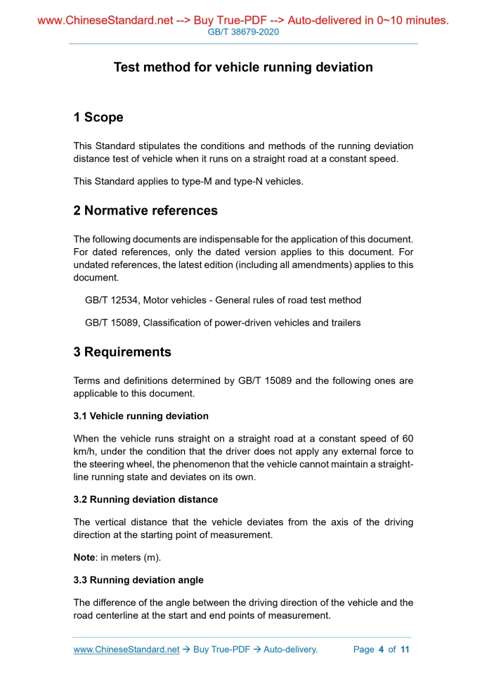 GB/T 38679-2020: Test method for vehicle running deviation Delivery: 9 seconds. True-PDF full-copy in English & invoice will be downloaded + auto-delivered via email. See step-by-step procedure Status: Valid