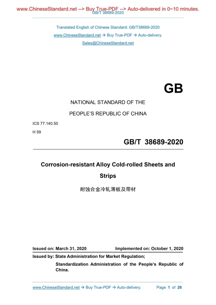 GB/T 38689-2020: Corrosion-resistant Alloy Cold-rolled Sheets and Strips Delivery: 9 seconds. True-PDF full-copy in English & invoice will be downloaded + auto-delivered via email. See step-by-step procedure Status: Valid