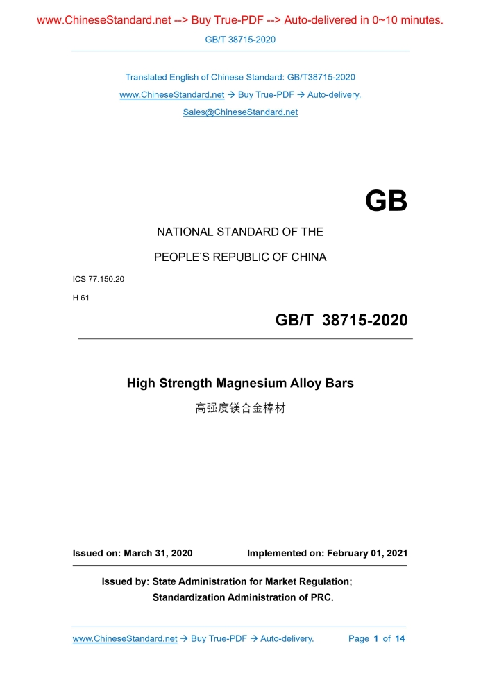 GB/T 38715-2020: High Strength Magnesium Alloy Bars Delivery: 9 seconds. True-PDF full-copy in English & invoice will be downloaded + auto-delivered via email. See step-by-step procedure Status: Valid