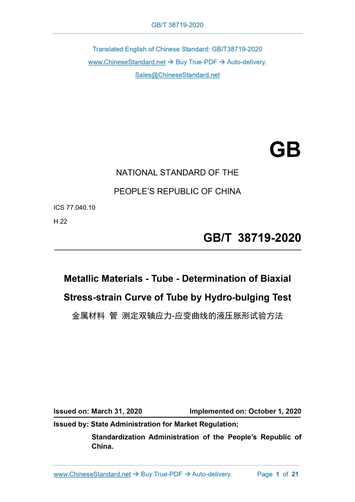 GB/T 38719-2020: Metallic Materials - Tube - Determination of Biaxial Stress-strain Curve of Tube by Hydro-bulging Test Delivery: 9 seconds. True-PDF full-copy in English & invoice will be downloaded + auto-delivered via email. See step-by-step procedure Status: Valid