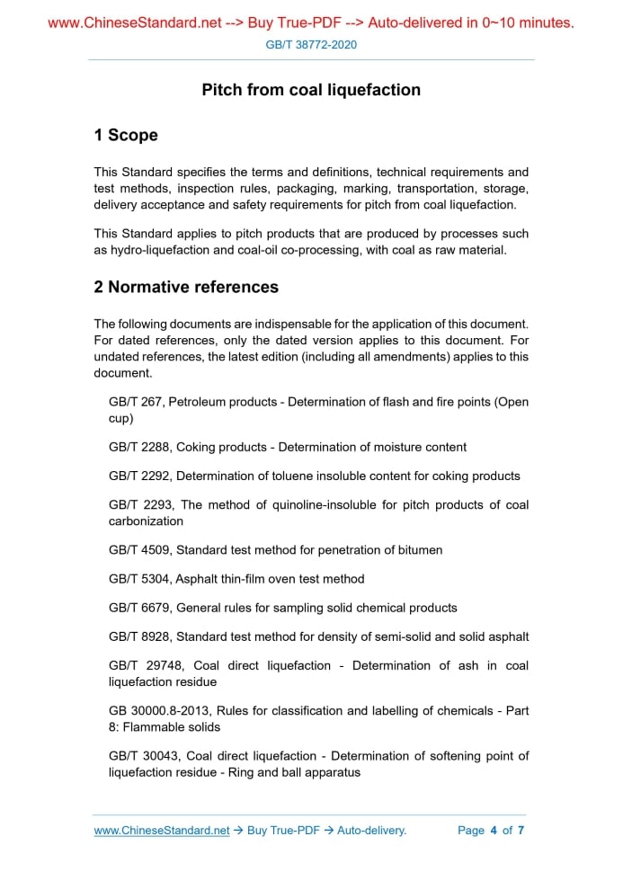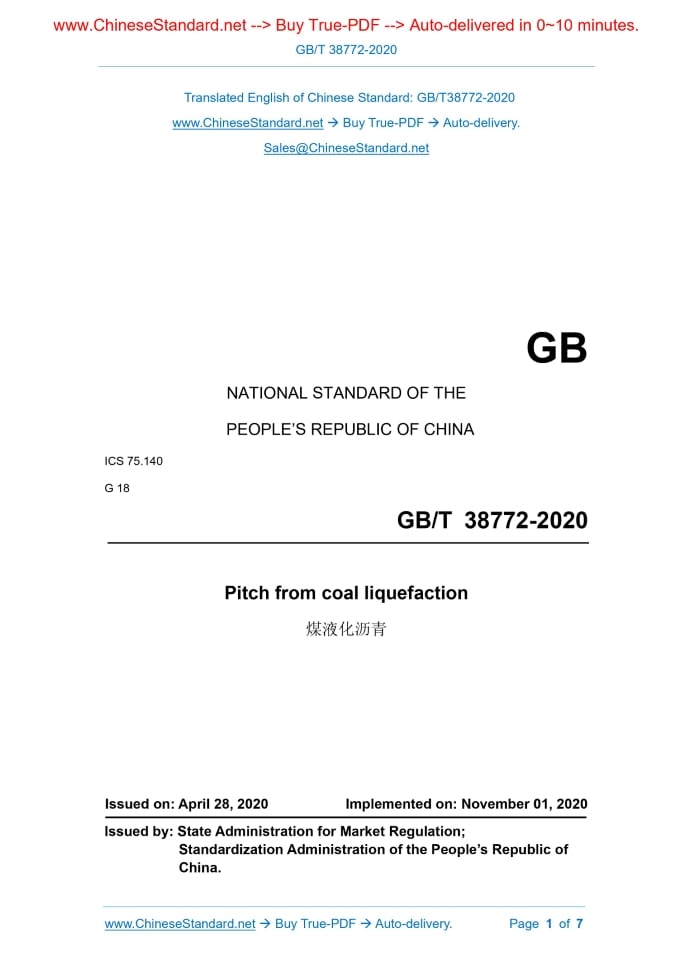GB/T 38772-2020: Pitch from coal liquefaction Delivery: 9 seconds. True-PDF full-copy in English & invoice will be downloaded + auto-delivered via email. See step-by-step procedure Status: Valid