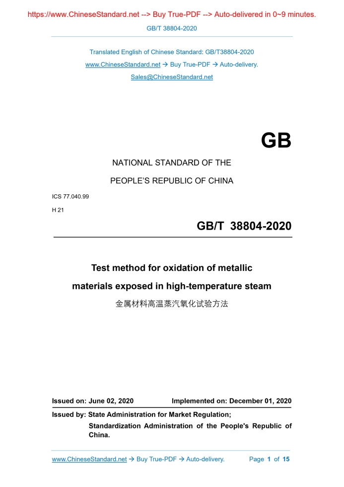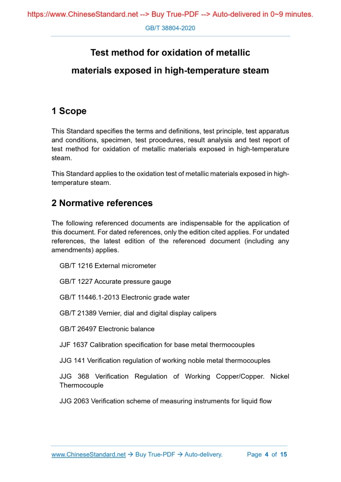GB/T 38804-2020: Test method for oxidation of metallic materials exposed in high-temperature steam Delivery: 9 seconds. True-PDF full-copy in English & invoice will be downloaded + auto-delivered via email. See step-by-step procedure Status: Valid