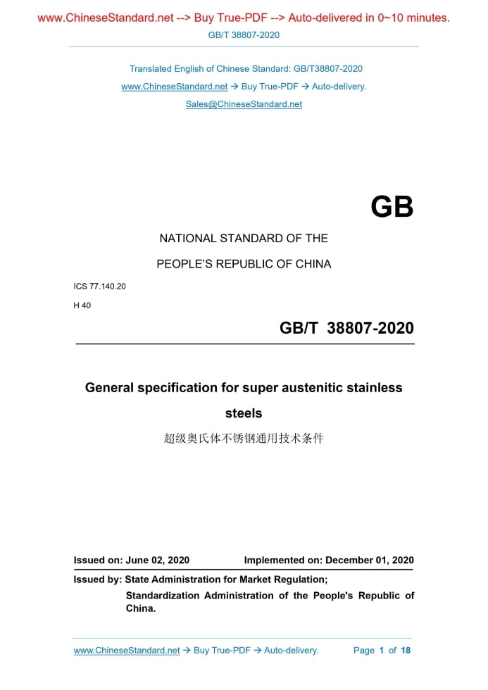 GB/T 38807-2020: General specification for super austenitic stainless steels Delivery: 9 seconds. True-PDF full-copy in English & invoice will be downloaded + auto-delivered via email. See step-by-step procedure Status: Valid