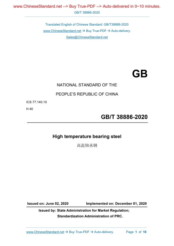 GB/T 38886-2020: High temperature bearing steel Delivery: 9 seconds. True-PDF full-copy in English & invoice will be downloaded + auto-delivered via email. See step-by-step procedure Status: Valid