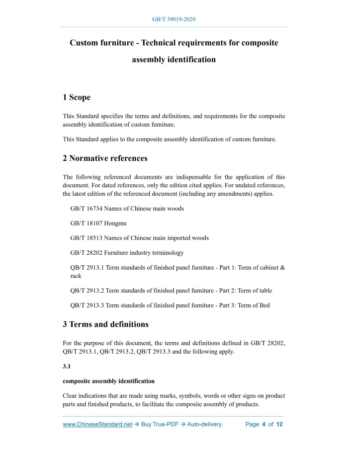 GB/T 39019-2020: Custom furniture - Technical requirements for composite assembly identification Delivery: 9 seconds. True-PDF full-copy in English & invoice will be downloaded + auto-delivered via email. See step-by-step procedure Status: Valid