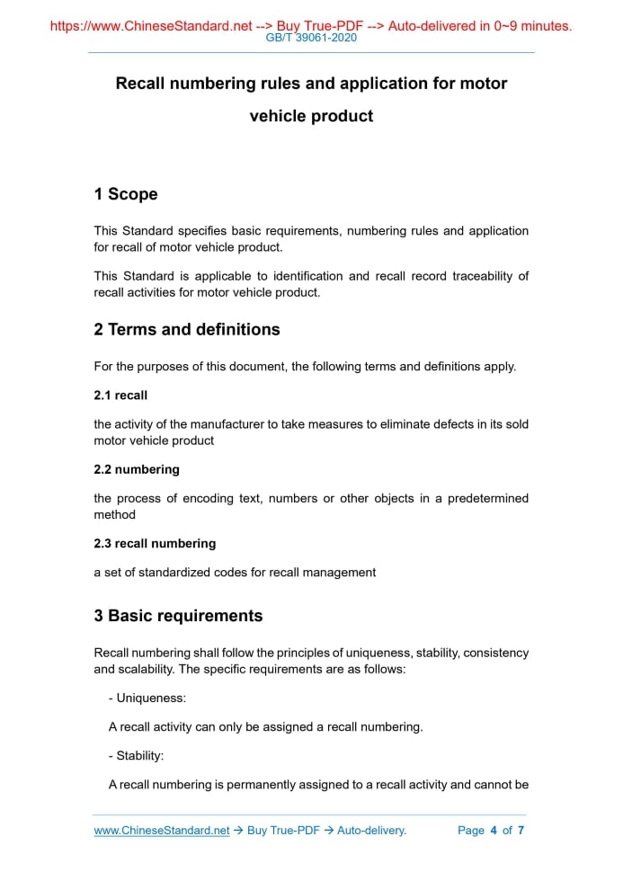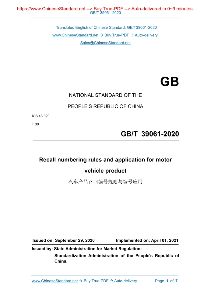 GB/T 39061-2020: Recall numbering rules and application for motor vehicle product Delivery: 9 seconds. True-PDF full-copy in English & invoice will be downloaded + auto-delivered via email. See step-by-step procedure Status: Valid