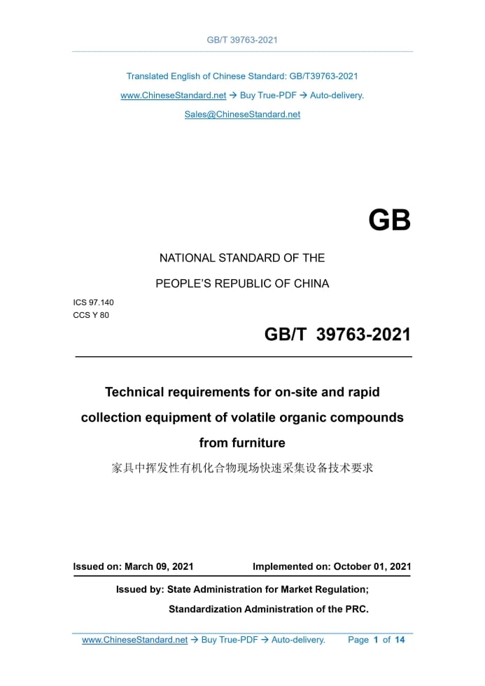 GB/T 39763-2021: Technical requirements for on-site and rapid collection equipment of volatile organic compounds from furniture Delivery: 9 seconds. True-PDF full-copy in English & invoice will be downloaded + auto-delivered via email. See step-by-step procedure Status: Valid
