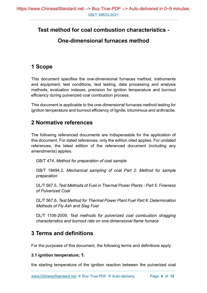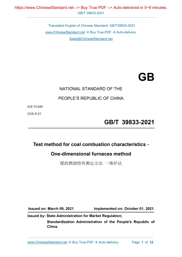 GB/T 39833-2021: Test method for coal combustion characteristics - One-dimensional furnaces method Delivery: 9 seconds. True-PDF full-copy in English & invoice will be downloaded + auto-delivered via email. See step-by-step procedure Status: Valid