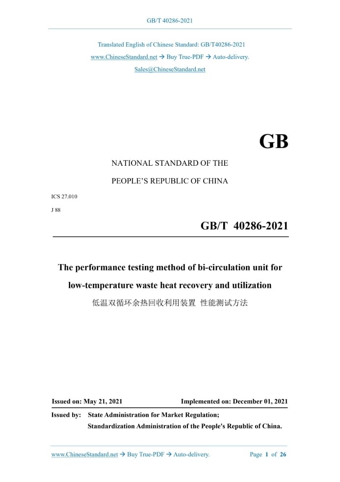 GB/T 40286-2021: The performance testing method of bi-circulation unit for low-temperature waste heat recovery and utilization Delivery: 9 seconds. True-PDF full-copy in English & invoice will be downloaded + auto-delivered via email. See step-by-step procedure Status: Valid