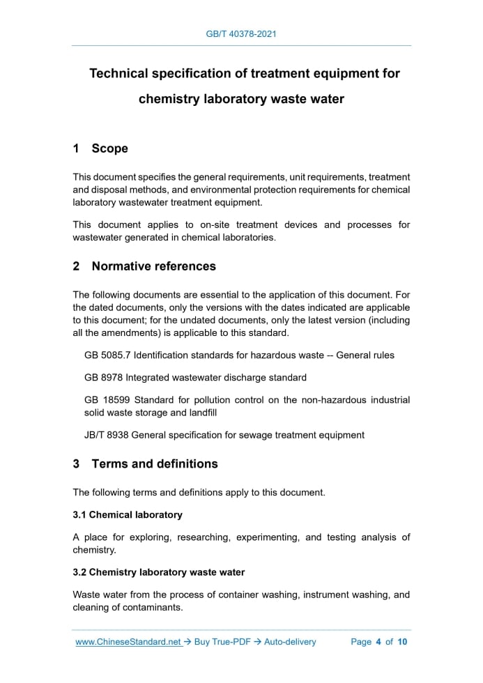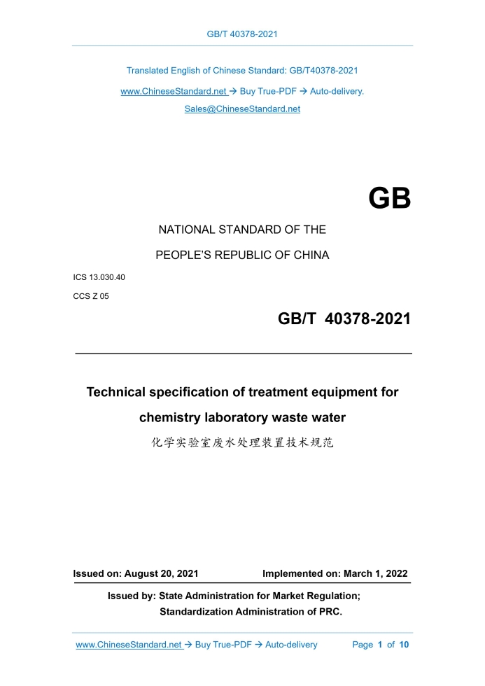 GB/T 40378-2021: Technical specification of treatment equipment for chemistry laboratory waste water Delivery: 9 seconds. True-PDF full-copy in English & invoice will be downloaded + auto-delivered via email. See step-by-step procedure Status: Valid