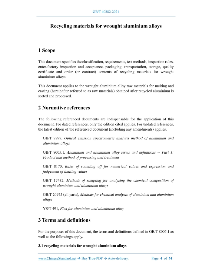GB/T 40382-2021: Recycling materials for wrought aluminium alloys Delivery: 9 seconds. True-PDF full-copy in English & invoice will be downloaded + auto-delivered via email. See step-by-step procedure Status: Valid