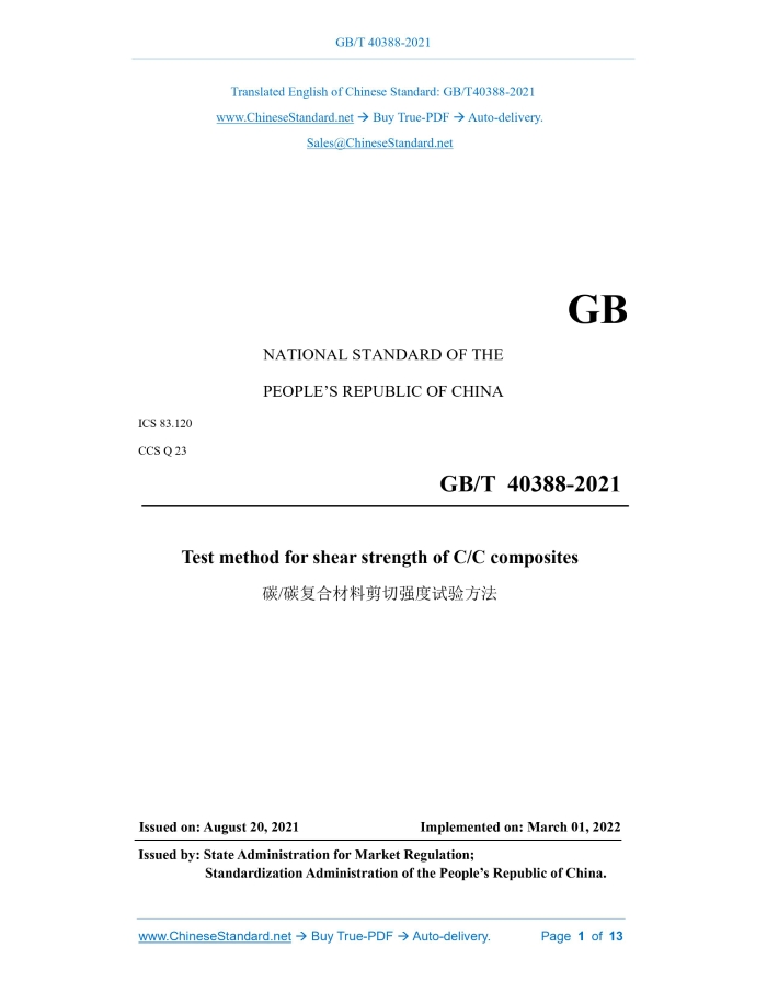 GB/T 40388-2021: Test method for shear strength of C/C composites Delivery: 9 seconds. True-PDF full-copy in English & invoice will be downloaded + auto-delivered via email. See step-by-step procedure Status: Valid