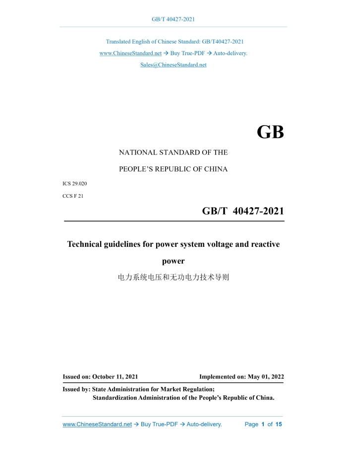 GB/T 40427-2021: Technical guidelines for power system voltage and reactive power Delivery: 9 seconds. True-PDF full-copy in English & invoice will be downloaded + auto-delivered via email. See step-by-step procedure Status: Valid