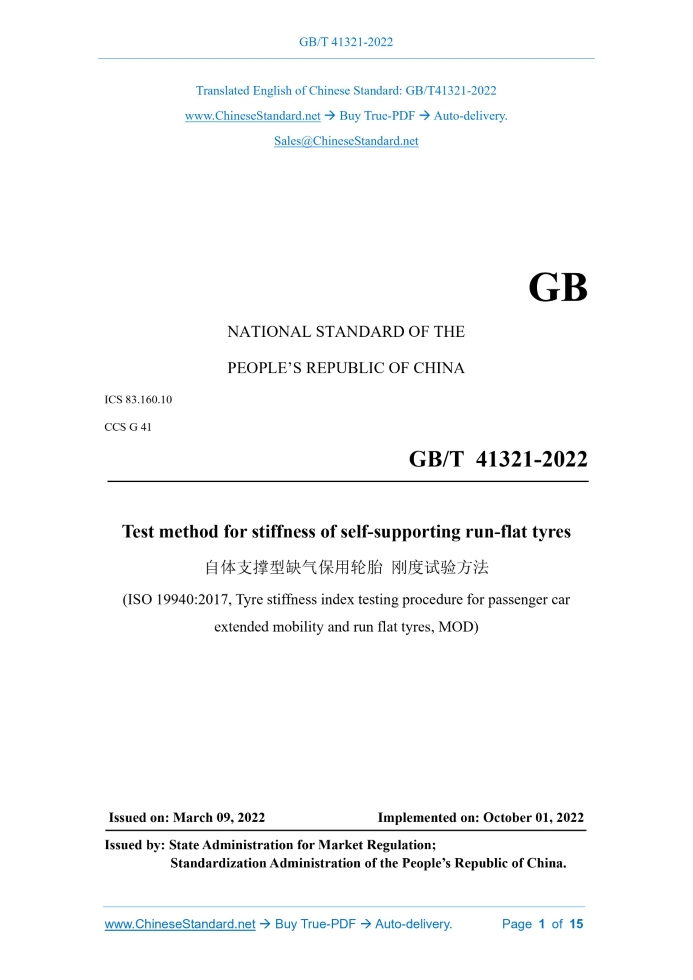 GB/T 41321-2022: Test method for stiffness of self-supporting run-flat tyres Delivery: 9 seconds. True-PDF full-copy in English & invoice will be downloaded + auto-delivered via email. See step-by-step procedure Status: Valid