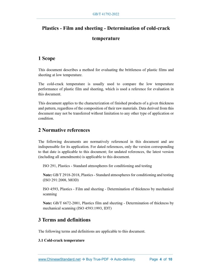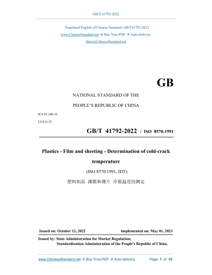 GB/T 41792-2022: Plastics - Film and sheeting - Determination of cold-crack temperature Delivery: 9 seconds. True-PDF full-copy in English & invoice will be downloaded + auto-delivered via email. See step-by-step procedure Status: Valid
