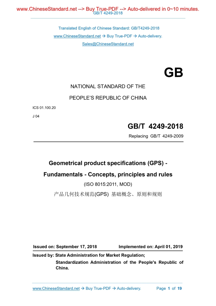 GB/T 4249-2018: Geometrical product specifications (GPS) -- Fundamentals -- Concepts, principles and rules Delivery: 9 seconds. True-PDF full-copy in English & invoice will be downloaded + auto-delivered via email. See step-by-step procedure Status: Valid GB/T 4249: Historical versions