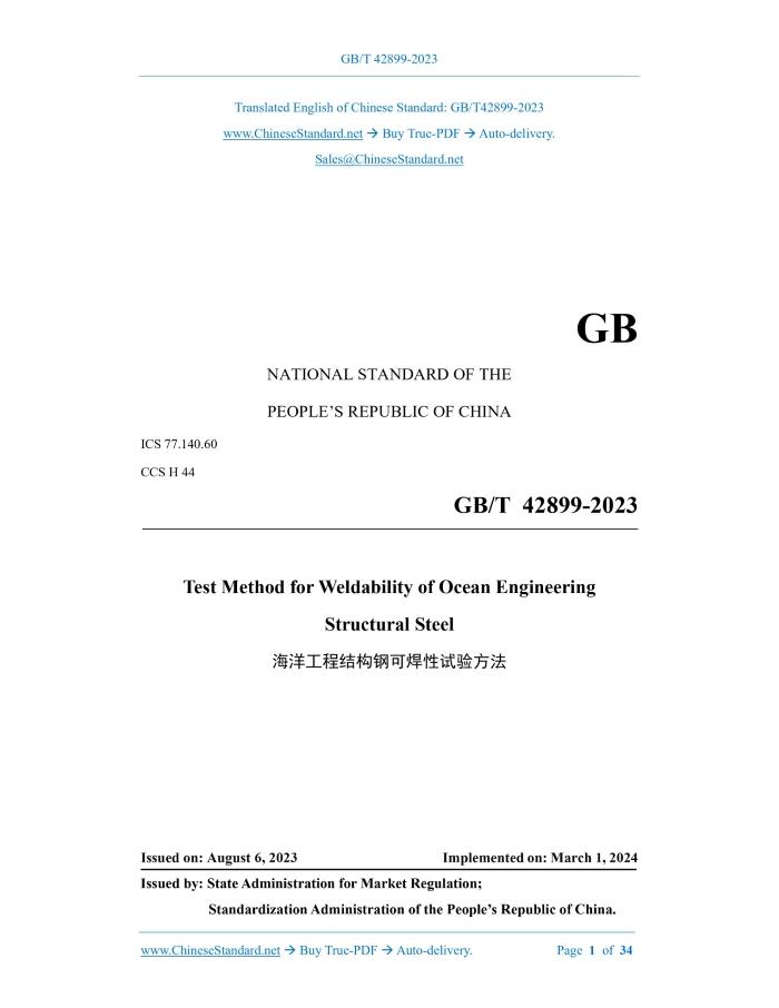 GB/T 42899-2023: Test method for weldability of ocean engineering structural steel Delivery: 9 seconds. True-PDF full-copy in English & invoice will be downloaded + auto-delivered via email. See step-by-step procedure Status: Valid