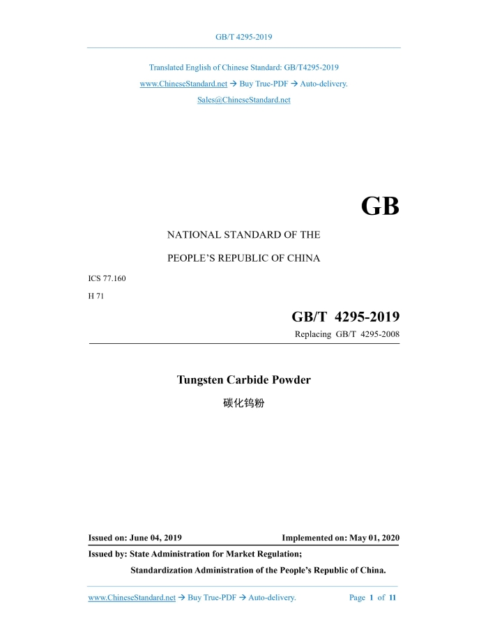 GB/T 4295-2019: Tungsten carbide powder Delivery: 9 seconds. True-PDF full-copy in English & invoice will be downloaded + auto-delivered via email. See step-by-step procedure Status: Valid GB/T 4295: Historical versions