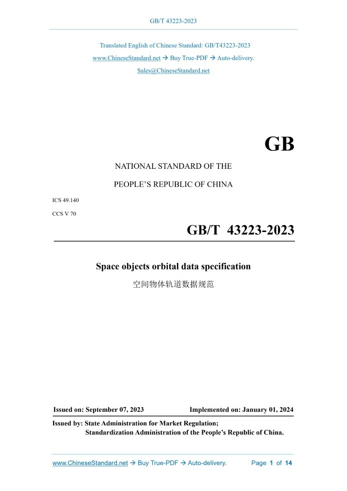 GB/T 43223-2023: Space objects orbital data specification Delivery: 9 seconds. True-PDF full-copy in English & invoice will be downloaded + auto-delivered via email. See step-by-step procedure Status: Valid