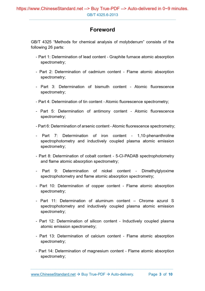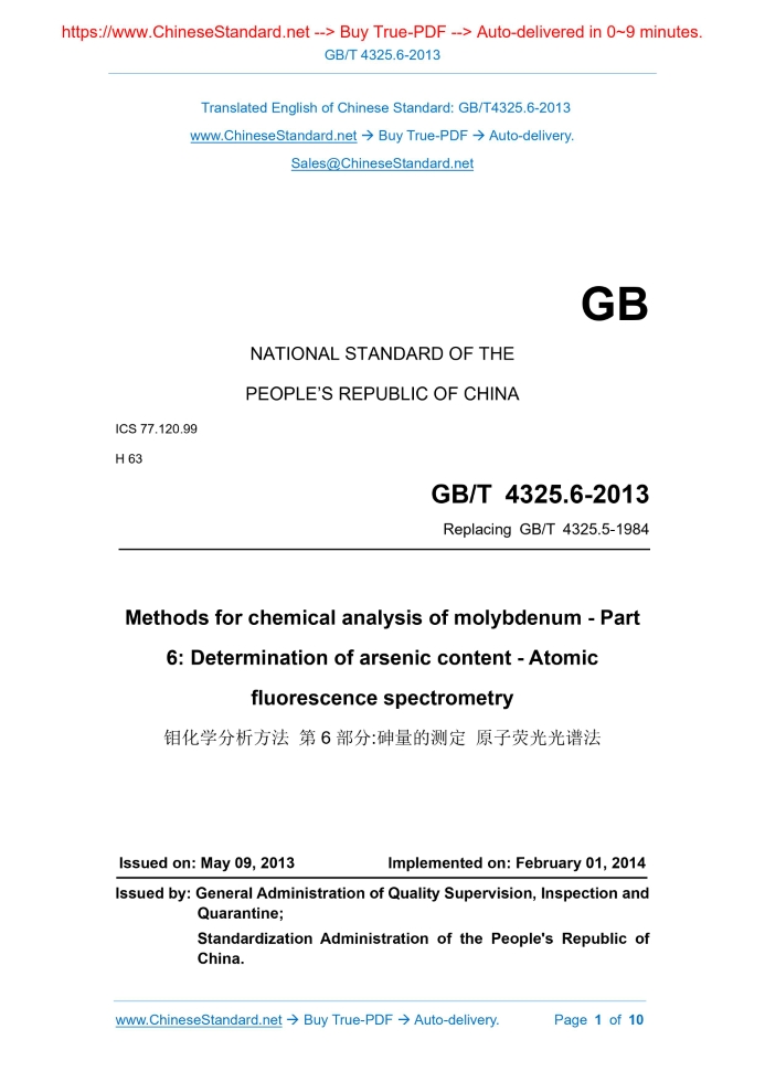 GB/T 4325.6-2013: Methods for chemical analysis of molybdenum - Part 6: Determination of arsenic content - Atomic fluorescence spectrometry Delivery: 9 seconds. True-PDF full-copy in English & invoice will be downloaded + auto-delivered via email. See step-by-step procedure Status: Valid GB/T 4325.6: Historical versions