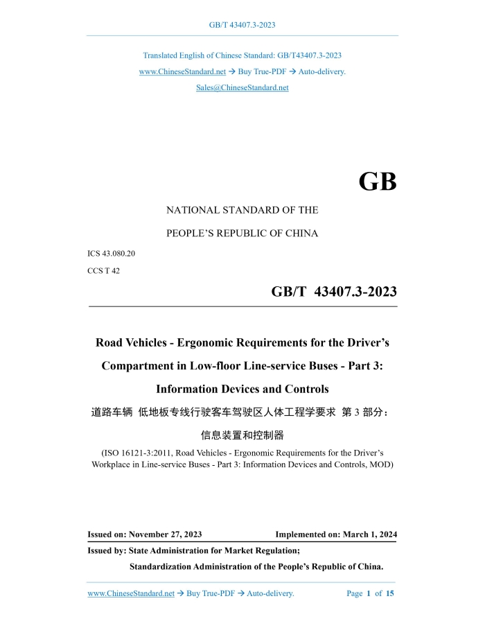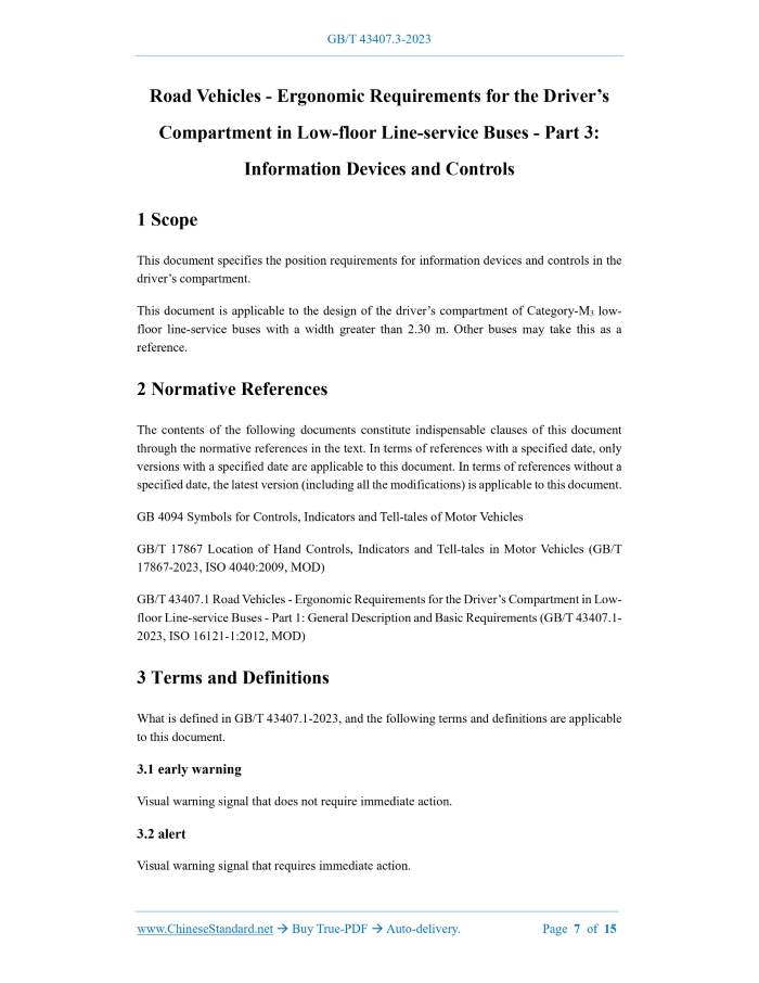 GB/T 43407.3-2023: Road vehicles -- Ergonomic requirements for the driver' s compartment in low-floor line-service buses -- Part 3: Information devices and controls Delivery: 9 seconds. True-PDF full-copy in English & invoice will be downloaded + auto-delivered via email. See step-by-step procedure Status: Valid
