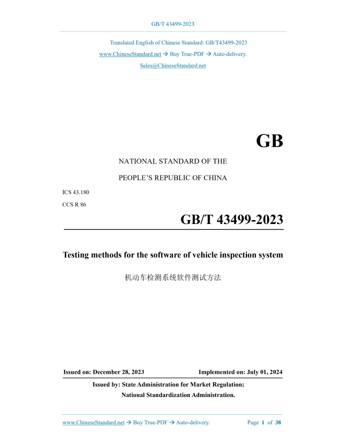 GB/T 43499-2023: Testing methods for the software of motor vehicle inspection system Delivery: 9 seconds. True-PDF full-copy in English & invoice will be downloaded + auto-delivered via email. See step-by-step procedure Status: Valid