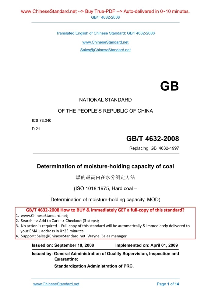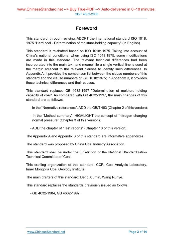 GB/T 4632-2008: Determination of moisture-holding capacity of coal Delivery: 9 seconds. True-PDF full-copy in English & invoice will be downloaded + auto-delivered via email. See step-by-step procedure Status: Valid GB/T 4632: Historical versions