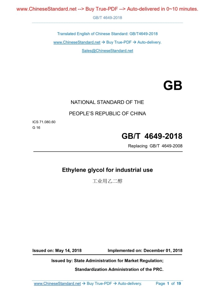 GB/T 4649-2018: Ethylene glycol for industrial use Delivery: 9 seconds. True-PDF full-copy in English & invoice will be downloaded + auto-delivered via email. See step-by-step procedure Status: Valid GB/T 4649: Historical versions