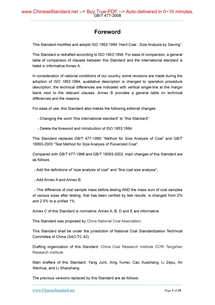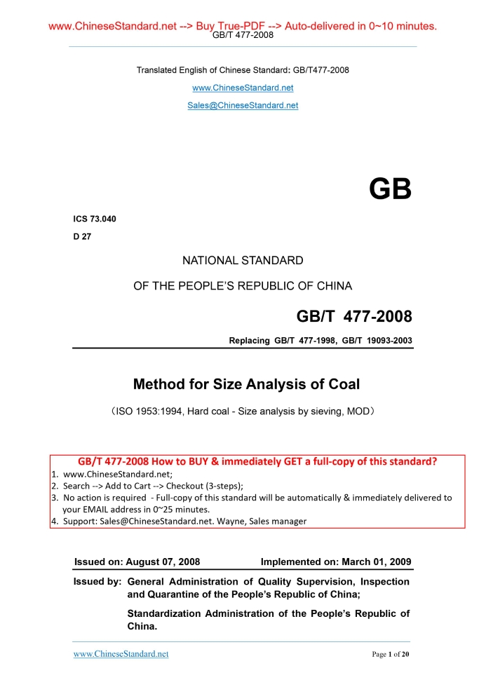 GB/T 477-2008: Method for size analysis of coal Delivery: 9 seconds. True-PDF full-copy in English & invoice will be downloaded + auto-delivered via email. See step-by-step procedure Status: Valid GB/T 477: Historical versions