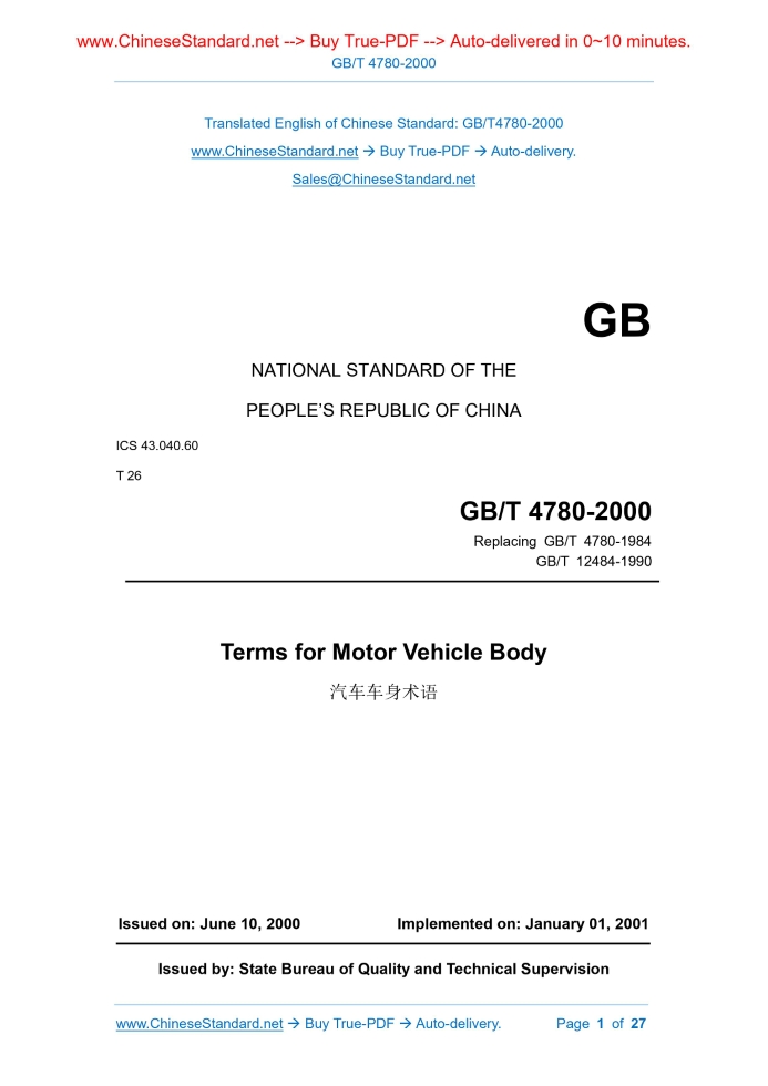 GB/T 4780-2000: Terms for motor vehicle body Delivery: 9 seconds. True-PDF full-copy in English & invoice will be downloaded + auto-delivered via email. See step-by-step procedure Status: Obsolete GB/T 4780: Historical versions