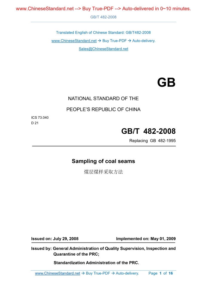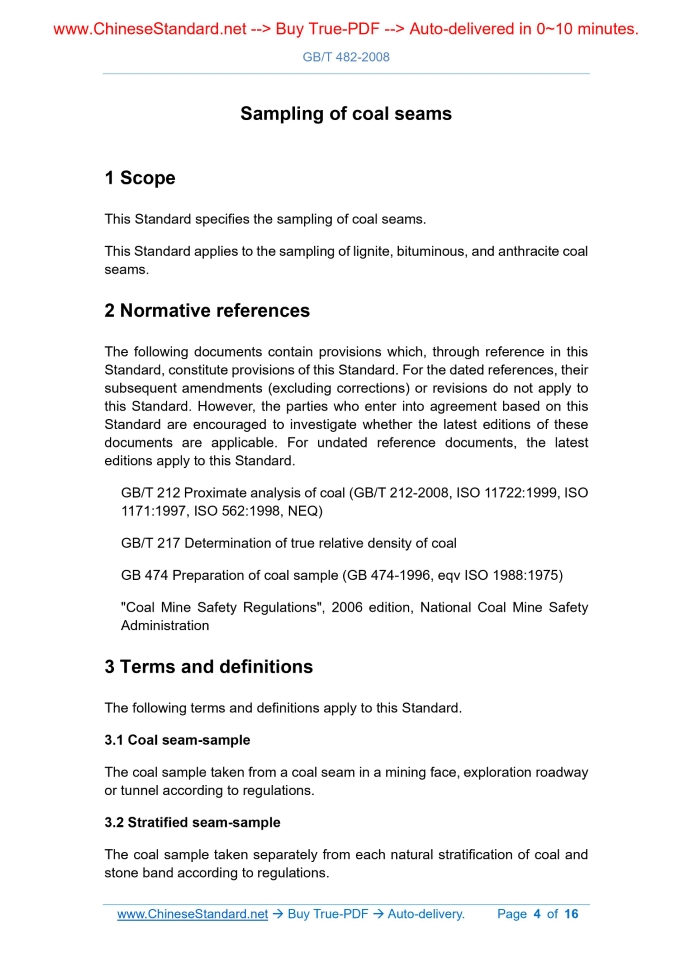 GB/T 482-2008: Sampling of coal seams Delivery: 9 seconds. True-PDF full-copy in English & invoice will be downloaded + auto-delivered via email. See step-by-step procedure Status: Valid GB/T 482: Historical versions