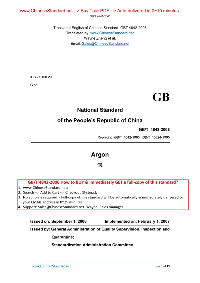 GB/T 4842-2006: Argon Delivery: 9 seconds. True-PDF full-copy in English & invoice will be downloaded + auto-delivered via email. See step-by-step procedure Status: Obsolete GB/T 4842: Historical versions