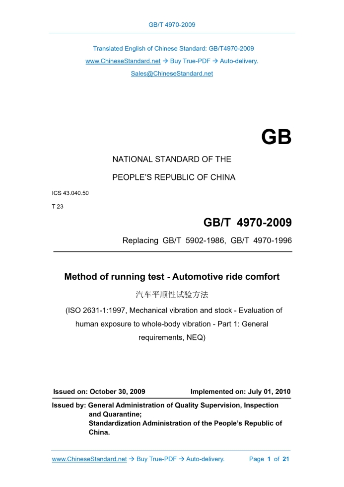 GB/T 4970-2009: Method of running test -- Automotive ride comfort Delivery: 9 seconds. True-PDF full-copy in English & invoice will be downloaded + auto-delivered via email. See step-by-step procedure Status: Valid GB/T 4970: Historical versions