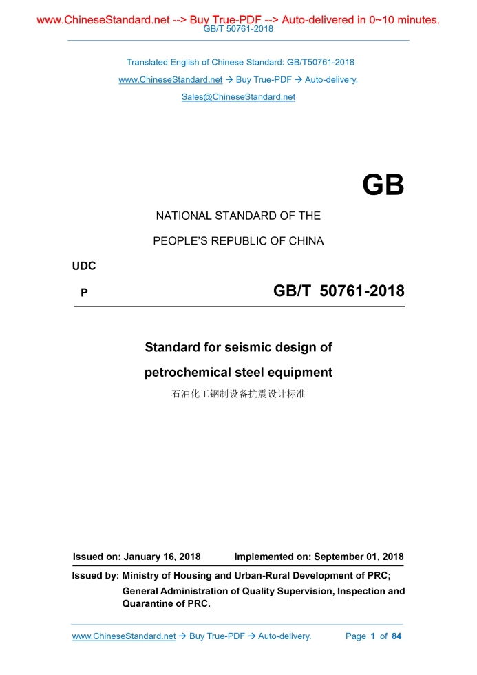 GB/T 50761-2018: Standard for seismic design of petrochemical steel equipment Delivery: 9 seconds. True-PDF full-copy in English & invoice will be downloaded + auto-delivered via email. See step-by-step procedure Status: Valid GB/T 50761: Historical versions