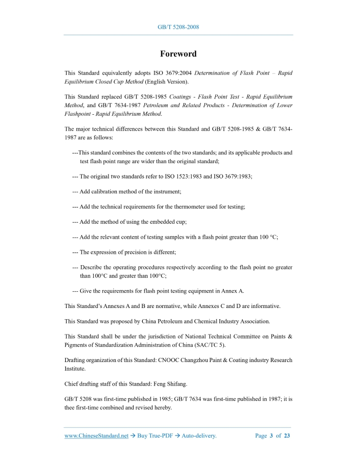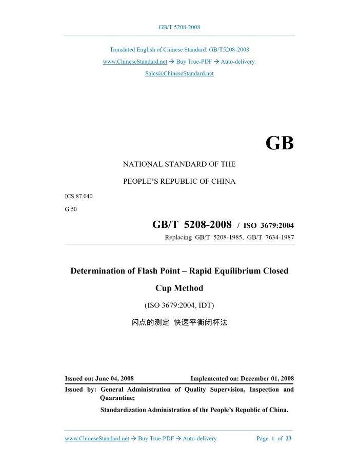 GB/T 5208-2008: Determination of flash point -- Rapid equilibrium closed cup method Delivery: 9 seconds. True-PDF full-copy in English & invoice will be downloaded + auto-delivered via email. See step-by-step procedure Status: Valid GB/T 5208: Historical versions
