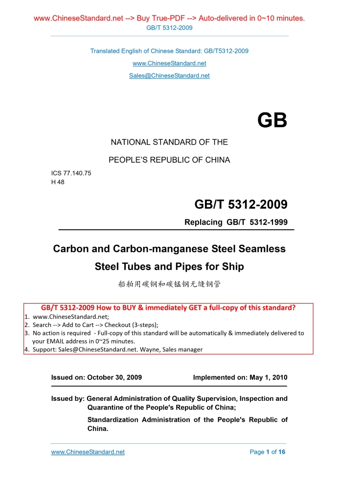 GB/T 5312-2009: Carbon and carbon-manganese steel seamless steel tubes and pipes for ship Delivery: 9 seconds. True-PDF full-copy in English & invoice will be downloaded + auto-delivered via email. See step-by-step procedure Status: Valid GB/T 5312: Historical versions