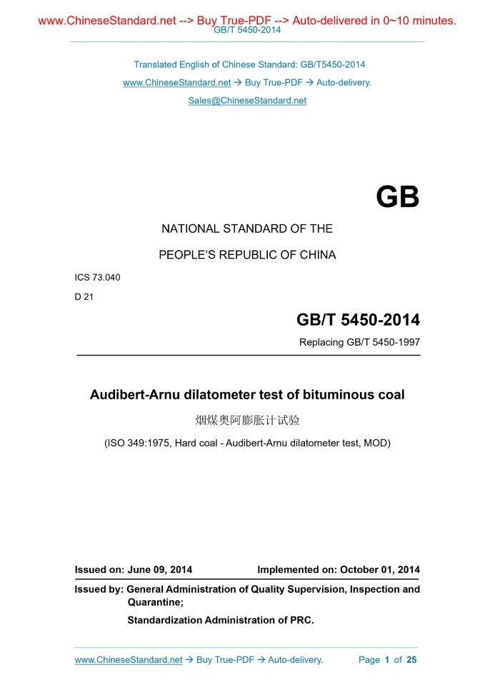 GB/T 5450-2014: Audibert-Arnu dilatometer test of bituminous coal Delivery: 9 seconds. True-PDF full-copy in English & invoice will be downloaded + auto-delivered via email. See step-by-step procedure Status: Valid GB/T 5450: Historical versions
