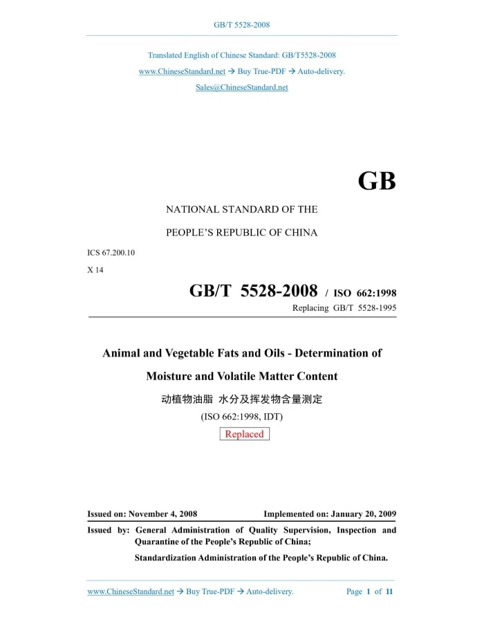 GB/T 5528-2008: Animal and vegetable fats and oils -- Determination of moisture and volatile matter content Delivery: 9 seconds. True-PDF full-copy in English & invoice will be downloaded + auto-delivered via email. See step-by-step procedure Status: Obsolete GB/T 5528: Historical versions