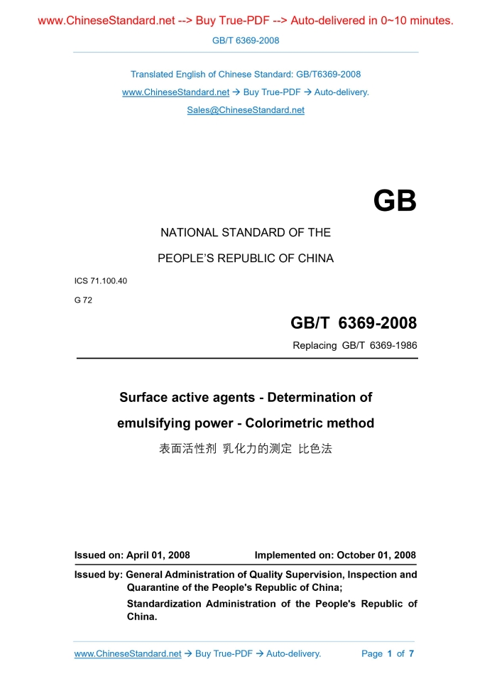 GB/T 6369-2008: Surface active agents -- Determination of emulsifying power -- Colorimetric method Delivery: 9 seconds. True-PDF full-copy in English & invoice will be downloaded + auto-delivered via email. See step-by-step procedure Status: Valid GB/T 6369: Historical versions