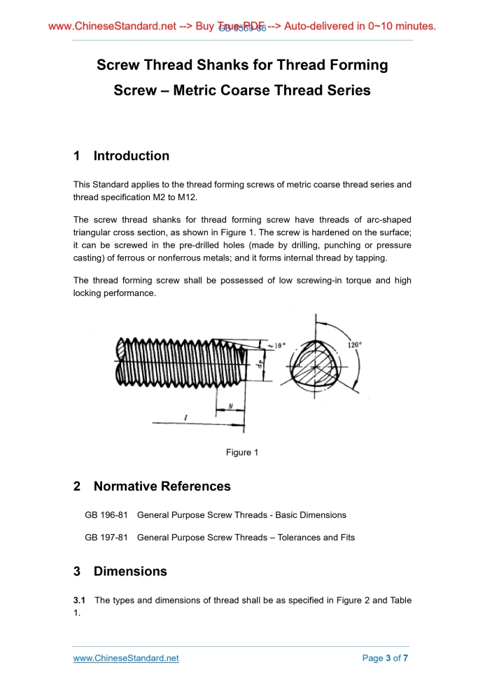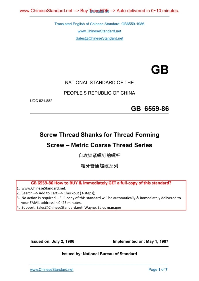 GB/T 6559-1986: Screw thread shanks for thread forming screw. Metric coarse thread series Delivery: 9 seconds. True-PDF full-copy in English & invoice will be downloaded + auto-delivered via email. See step-by-step procedure