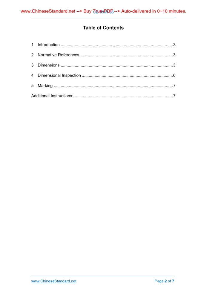 Similar standardsGB/T 6559-1986: Screw thread shanks for thread forming screw. Metric coarse thread series---This is an excerpt. Full copy of true-PDF in English version (including equations, symbols, images, flow-chart, tables, and figures etc.), auto-downloaded/delivered in 9 seconds, can be purchased online: https://www.ChineseStandard.net/PDF.aspx/GBT6559-1986GB NATIONAL STANDARD OF THE PEOPLE’S REPUBLIC OF CHINA UDC 621.882 Screw Thread Shanks for Thread Forming Screw – Metric Coarse Thread Series Issued on. JULY 2, 1986 Implemented on. MAY 1, 1987 Issued by. National Bureau of Standard Table of Contents1 Introduction... 3 2 Normative References... 3 3 Dimensions... 3 4 Dimensional Inspection... 6 5 Marking... 7 Additional Instructions... 7 Screw Thread Shanks for Thread Forming Screw – Metric Coarse Thread Series1 IntroductionThis Standard applies to the thread forming screws of metric coarse thread series and thread specification M2 to M12. The screw thread shanks for thread forming screw have threads of arc-shaped triangular cross section, as shown in Figure 1.The screw is hardened on the surface; it can be screwed in the pre-drilled holes (made by drilling, punching or pressure casting) of ferrous or nonferrous metals; and it forms internal thread by tapping. The thread forming screw shall be possessed of low screwing-in torque and high locking performance. Figure 12 Normative ReferencesGB 196-81 General Purpose Screw Threads - Basic Dimensions GB 197-81 General Purpose Screw Threads – Tolerances and Fits3 Dimensions3.1 The types and dimensions of thread shall be as specified in Figure 2 and Table 1.4 Dimensional Inspection4.1 The inspection method of circumcircle diameter (d) 4.1.1 Use a smooth special limit gauge to inspect the circumcircle diameter of shanks (d). shanks shall pass through go gauge smoothly; and the end face of shanks shall not go beyond the end face of no-go gauge.5 MarkingThe example of marking for the screw thread shanks for thread forming screw of thread specification M5 and nominal length l = 20 mm. ......Source: Above contents are excerpted from the full-copy PDF -- translated/reviewed by: www.ChineseStandard.net / Wayne Zheng et al. Tips & Frequently Asked Questions:Question 1: How long will the true-PDF of English version of GB/T 6559-1986 be delivered?Answer: The full copy PDF of English version of GB/T 6559-1986 can be downloaded in 9 seconds, and it will also be emailed to you in 9 seconds (double mechanisms to ensure the delivery reliably), with PDF-invoice.Question 2: Can I share the purchased PDF of GB/T 6559-1986_English with my colleagues?Answer: Yes. The purchased PDF of GB/T 6559-1986_English will be deemed to be sold to your employer/organization who actually paid for it, including your colleagues and your employer's intranet.Question 3: Does the price include tax/VAT?Answer: Yes. Our tax invoice, downloaded/delivered in 9 seconds, includes all tax/VAT and complies with 100+ countries' tax regulations (tax exempted in 100+ countries) -- See Avoidance of Double Taxation Agreements (DTAs): List of DTAs signed between Singapore and 100+ countriesQuestion 4: Do you accept my currency other than USD?Answer: Yes. www.ChineseStandard.us -- GB/T 6559-1986 -- Click this link and select your country/currency to pay, the exact amount in your currency will be printed on the invoice. Full PDF will also be downloaded/emailed in 9 seconds.How to buy and download a true PDF of English version of GB/T 6559-1986?A step-by-step guide to download PDF of GB/T 6559-1986_EnglishStep 1: Visit website https://www.ChineseStandard.net (Pay in USD), or https://www.ChineseStandard.us (Pay in any currencies such as Euro, KRW, JPY, AUD).Step 2: Search keyword "GB/T 6559-1986". Step 3: Click "Add to Cart". If multiple PDFs are required, repeat steps 2 and 3 to add up to 12 PDFs to cart. Step 4: Select payment option (Via payment agents Stripe or PayPal). Step 5: Customize Tax Invoice -- Fill up your email etc. Step 6: Click "Checkout". Step 7: Make payment by credit card, PayPal, Google Pay etc. After the payment is completed and in 9 seconds, you will receive 2 emails attached with the purchased PDFs and PDF-invoice, respectively. Step 8: Optional -- Go to download PDF. Step 9: Optional -- Click Open/Download PDF to download PDFs and invoice. See screenshots for above steps: Steps 1~3 Steps 4~6 Step 7 Step 8 Step 9 |