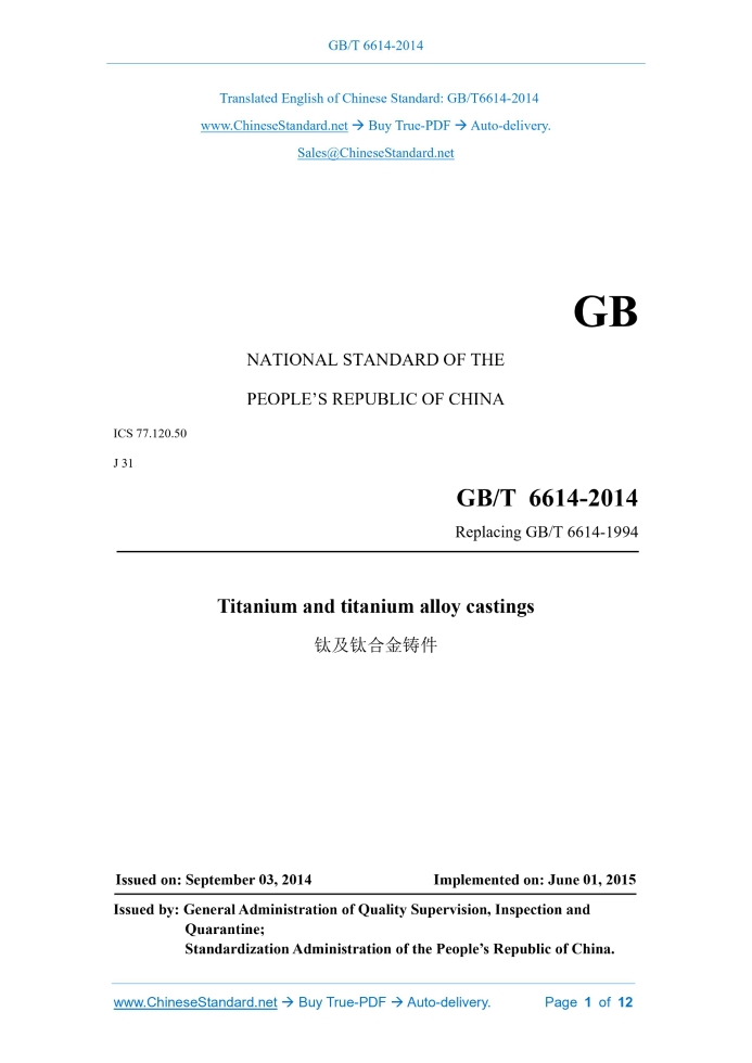 GB/T 6614-2014: Titanium and titanium alloy castings Delivery: 9 seconds. True-PDF full-copy in English & invoice will be downloaded + auto-delivered via email. See step-by-step procedure Status: Valid GB/T 6614: Historical versions