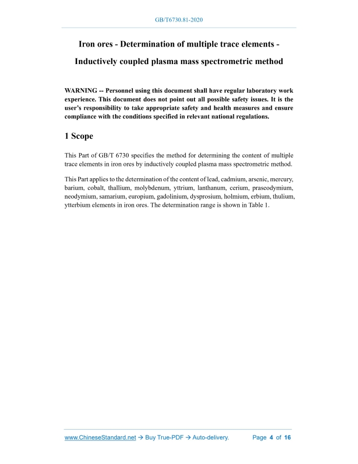 GB/T 6730.81-2020: Iron ores - Determination of multiple trace elements - Inductively coupled plasma mass spectrometric method