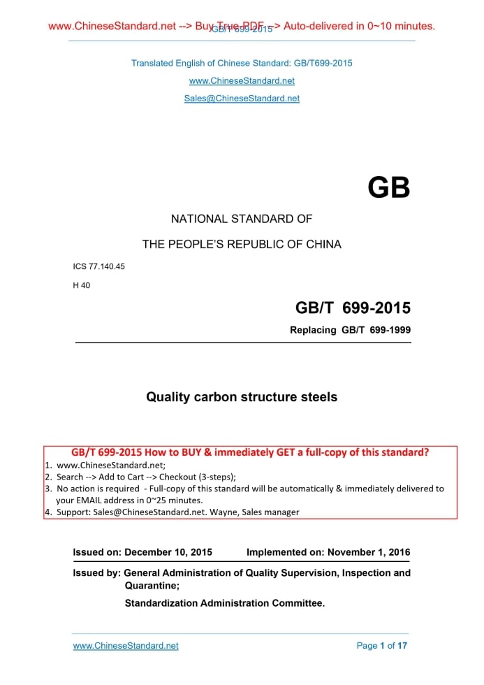 GB/T 699-2015: Quality carbon structure steels Delivery: 9 seconds. True-PDF full-copy in English & invoice will be downloaded + auto-delivered via email. See step-by-step procedure Status: Valid GB/T 699: Historical versions