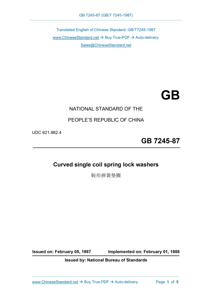 GB/T 7245-1987: Curved single coil spring lock washers Delivery: 9 seconds. True-PDF full-copy in English & invoice will be downloaded + auto-delivered via email. See step-by-step procedure